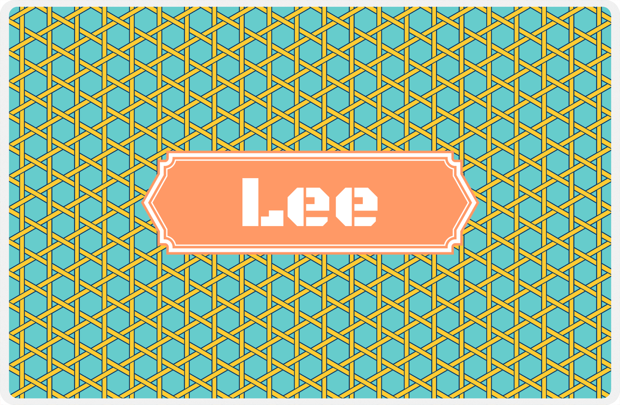 Personalized Trellis Placemat - Viking Blue and Mustard - Tangerine