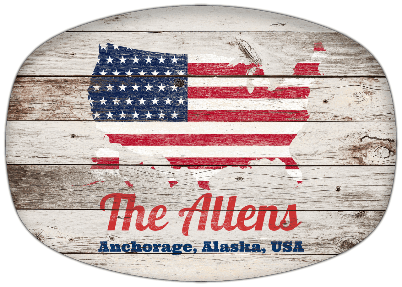 Personalized Faux Wood Grain Plastic Platter - USA Flag - Anchorage, Alaska