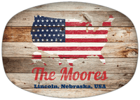 Personalized Faux Wood Grain Plastic Platter - USA Flag - Lincoln, Nebraska