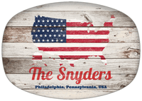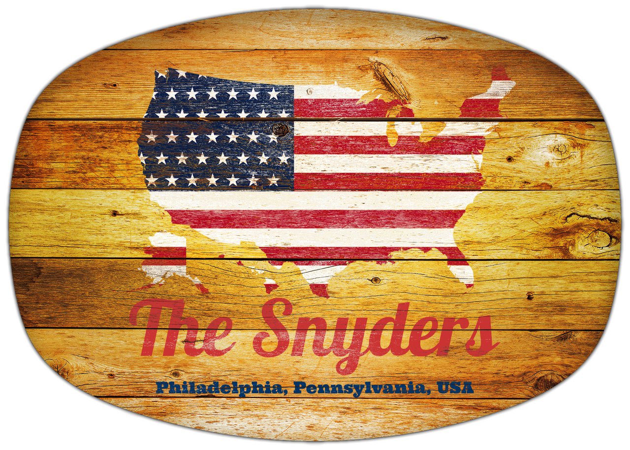 Personalized Faux Wood Grain Plastic Platter - USA Flag - Philadelphia, Pennsylvania