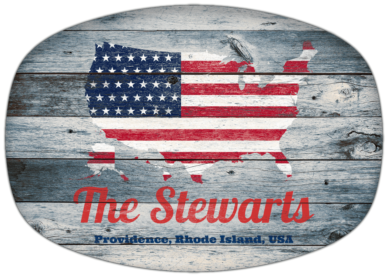 Personalized Faux Wood Grain Plastic Platter - USA Flag - Providence, Rhode Island