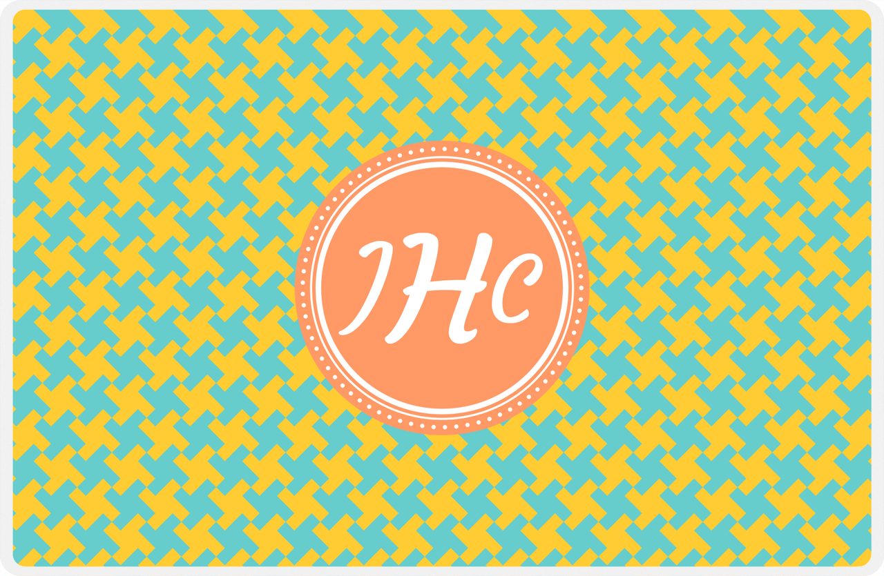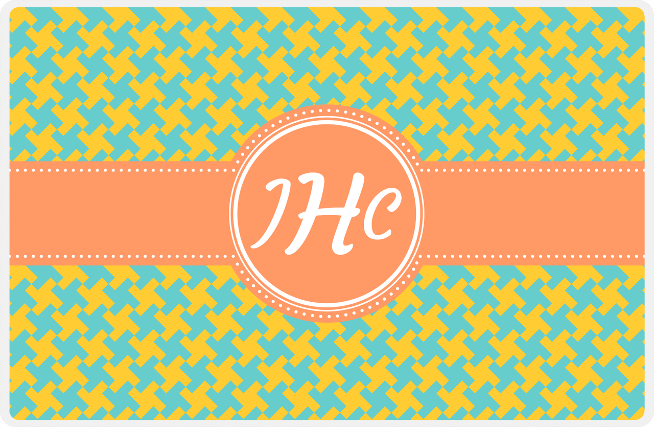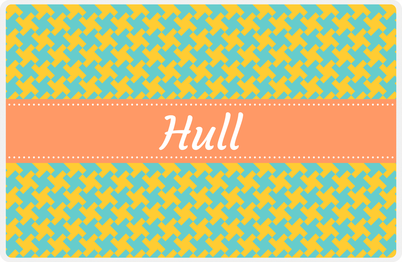 Personalized Alternate Houndstooth Placemat - Viking Blue and Mustard - Tangerine Frame