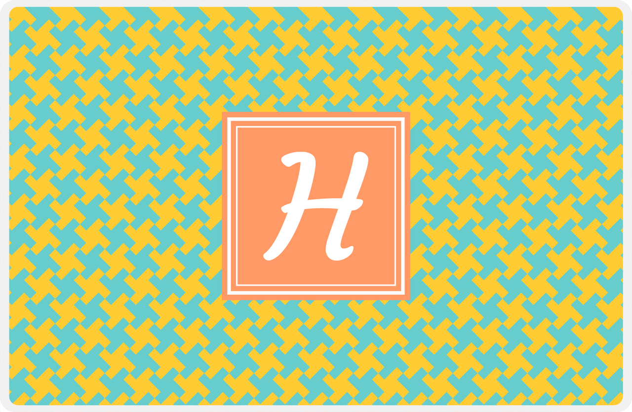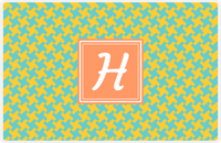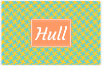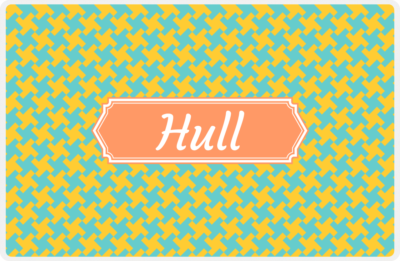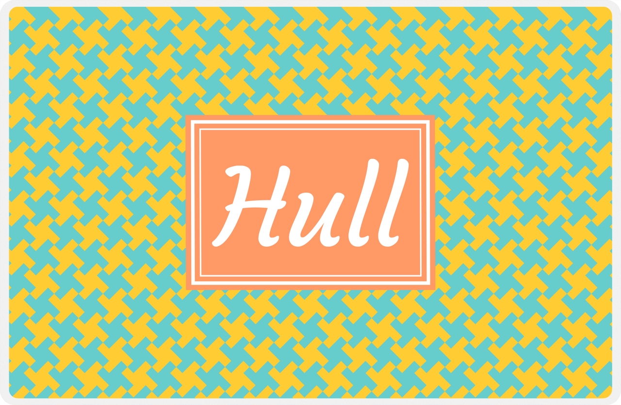 Personalized Alternate Houndstooth Placemat - Viking Blue and Mustard - Tangerine Frame