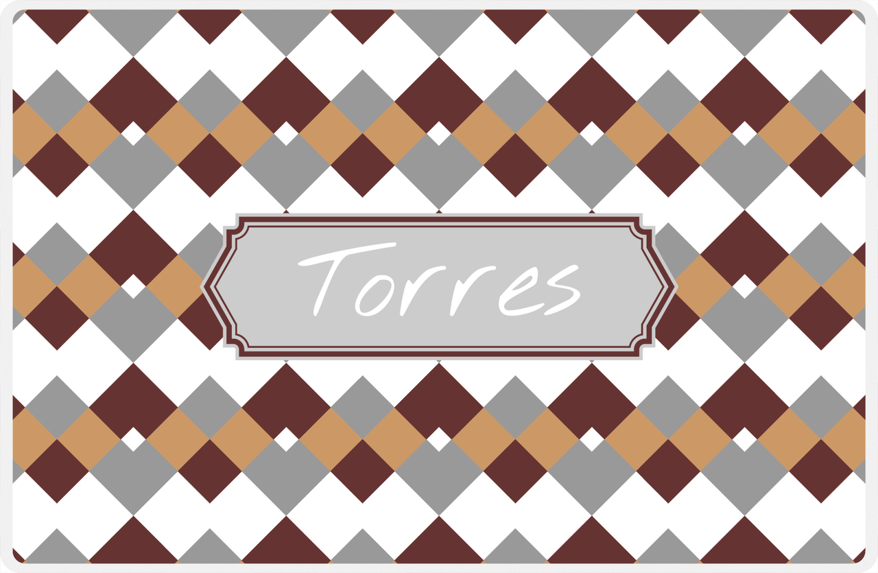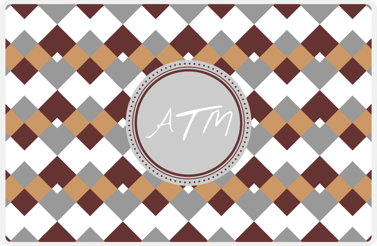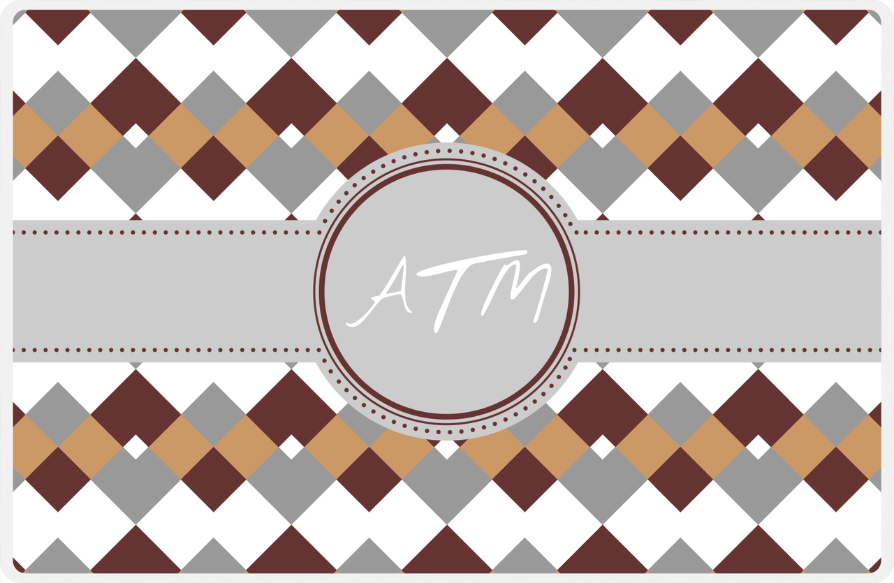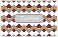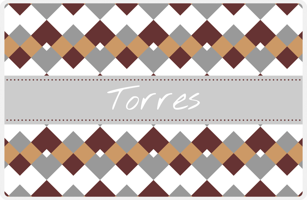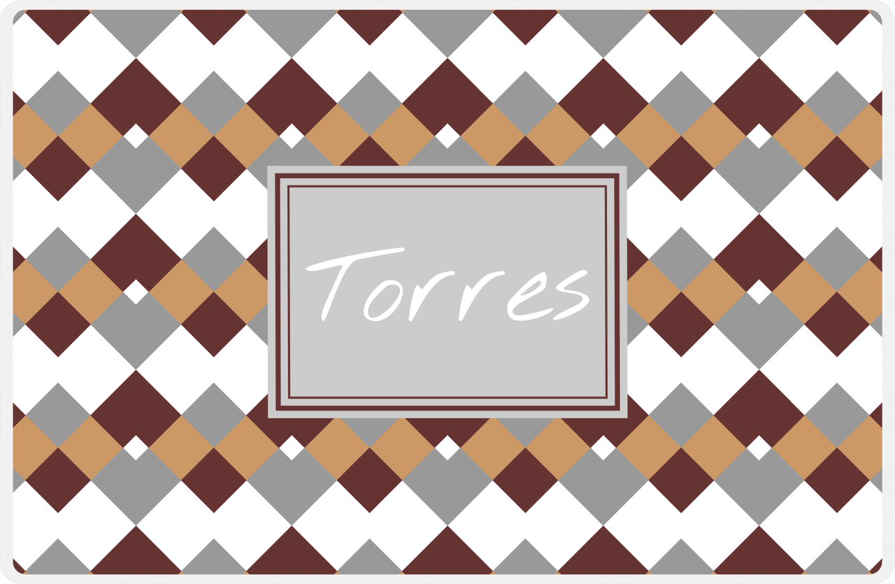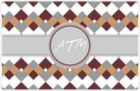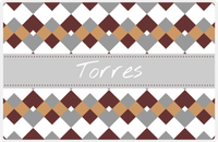 Personalized Chevron Placemat - Brown and White - Light Grey Frame