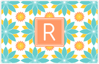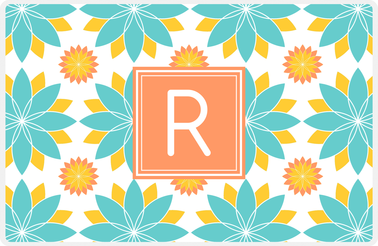 Personalized Flower Burst Placemat - Viking Blue and Mustard - Tangerine Frame