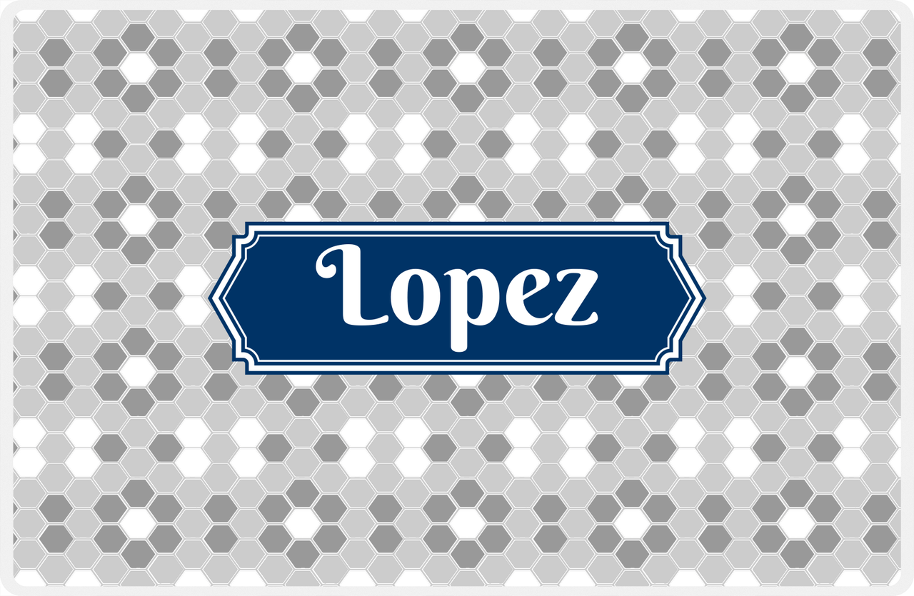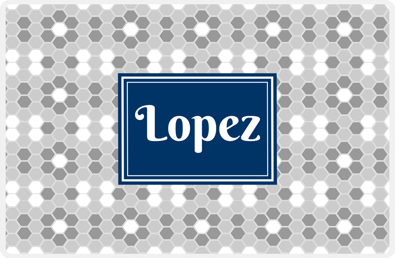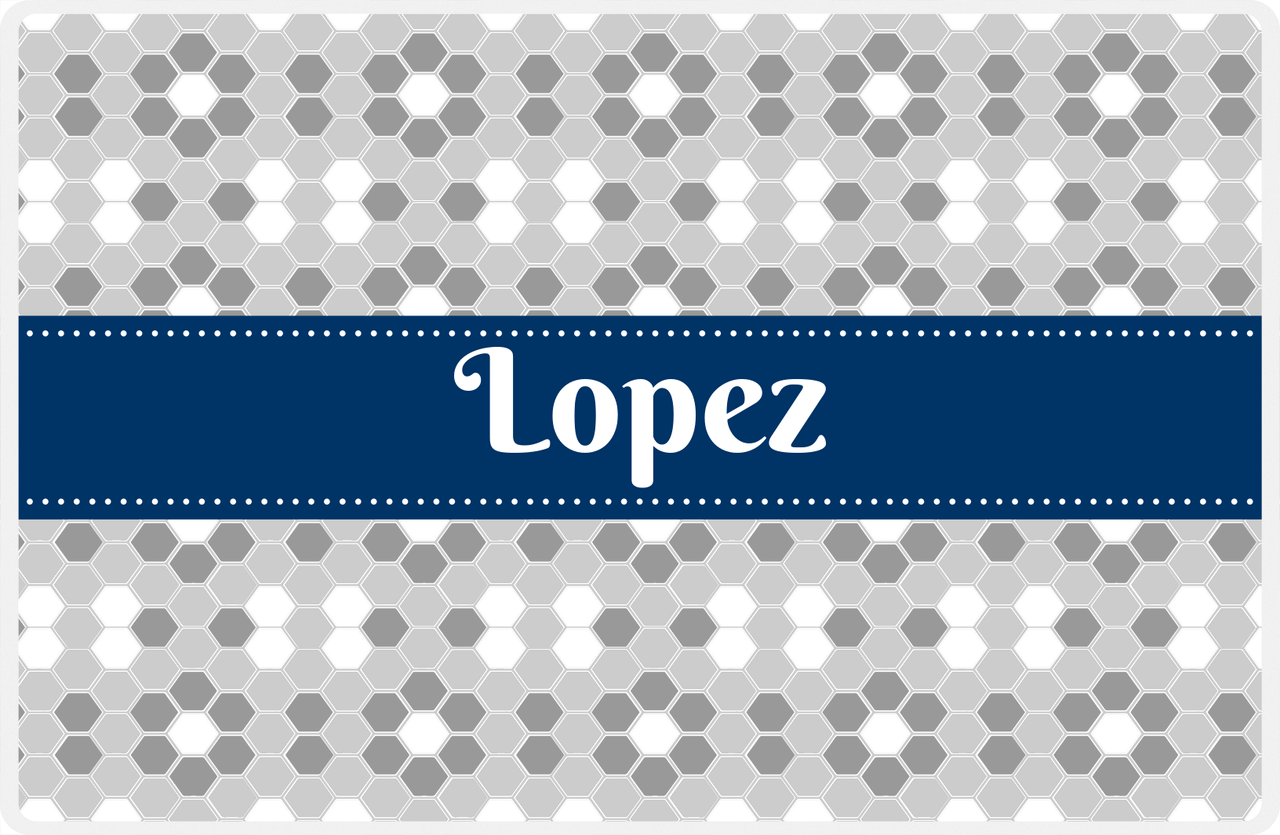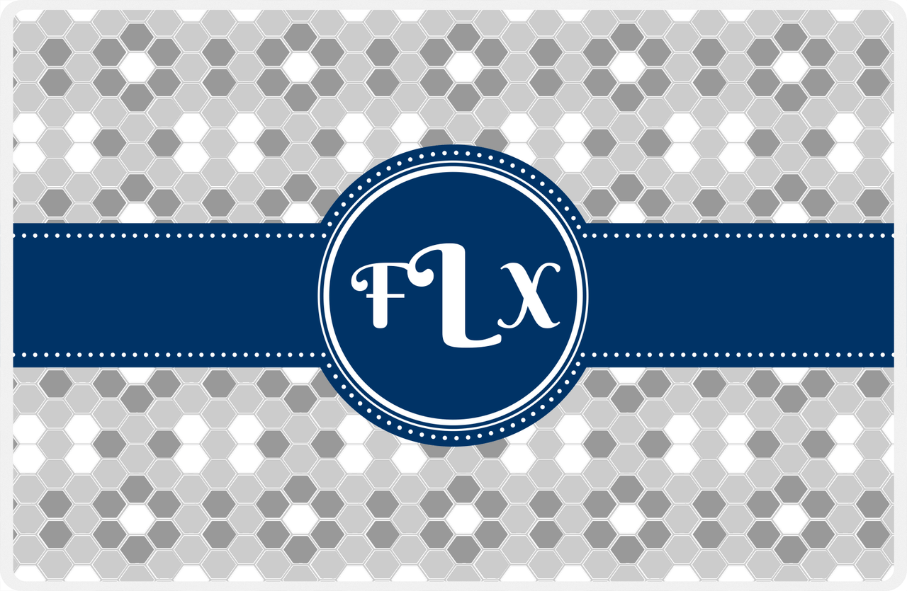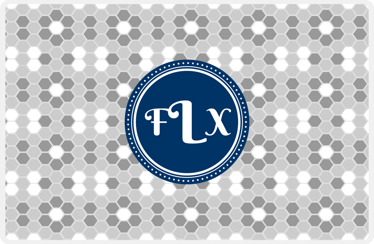Personalized Flower Comb Placemat - Grey and White - Navy Frame