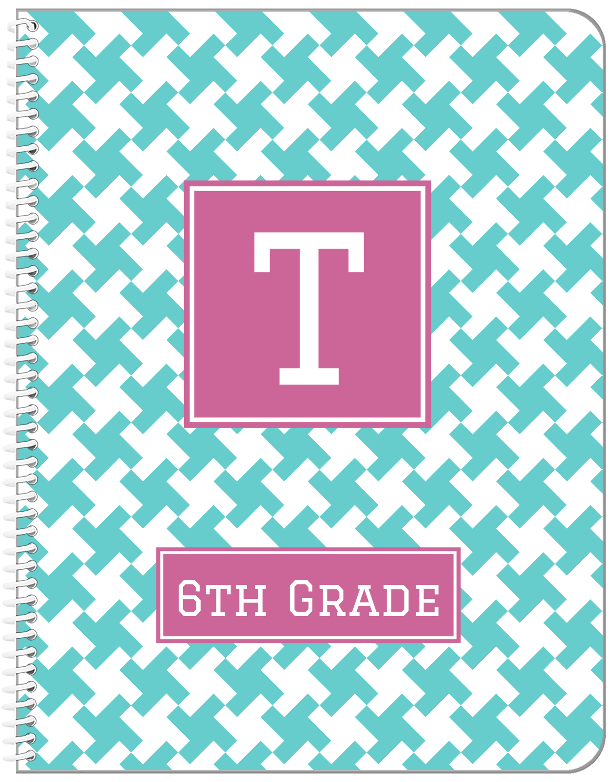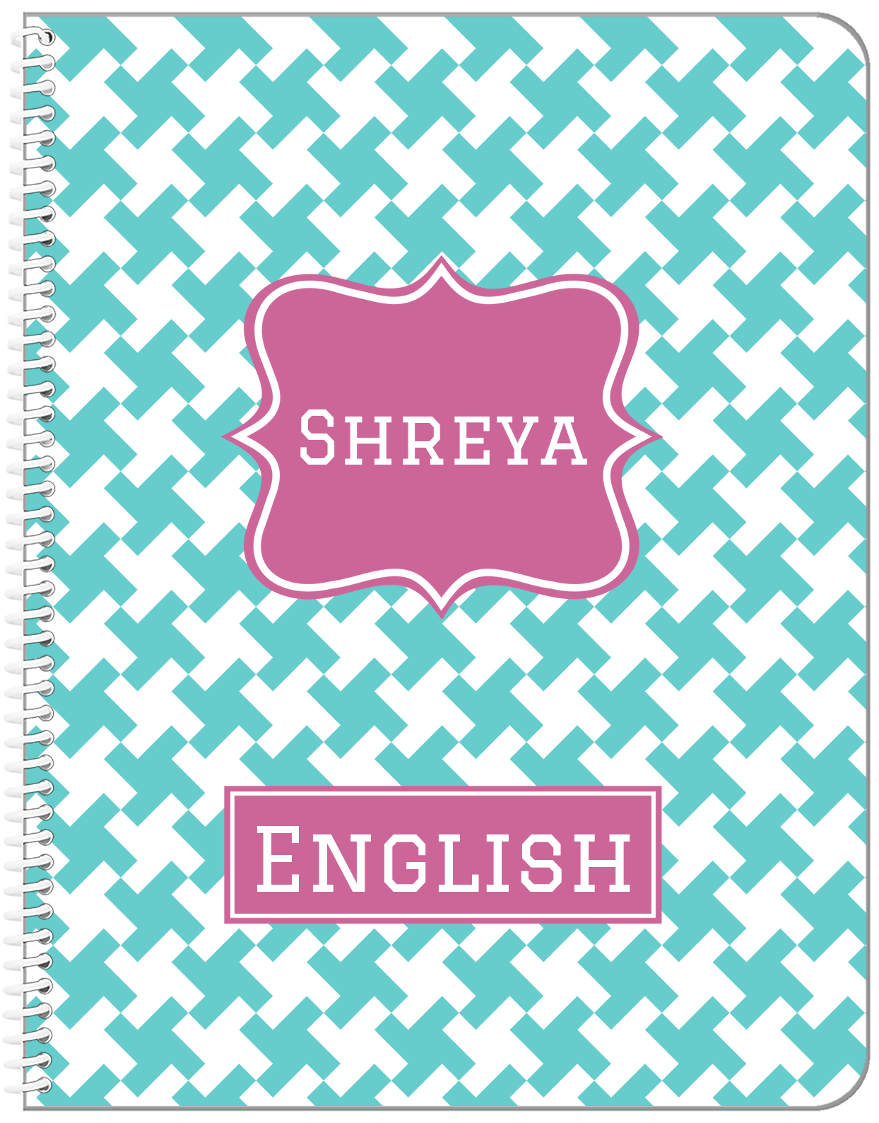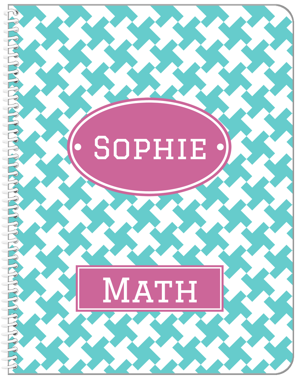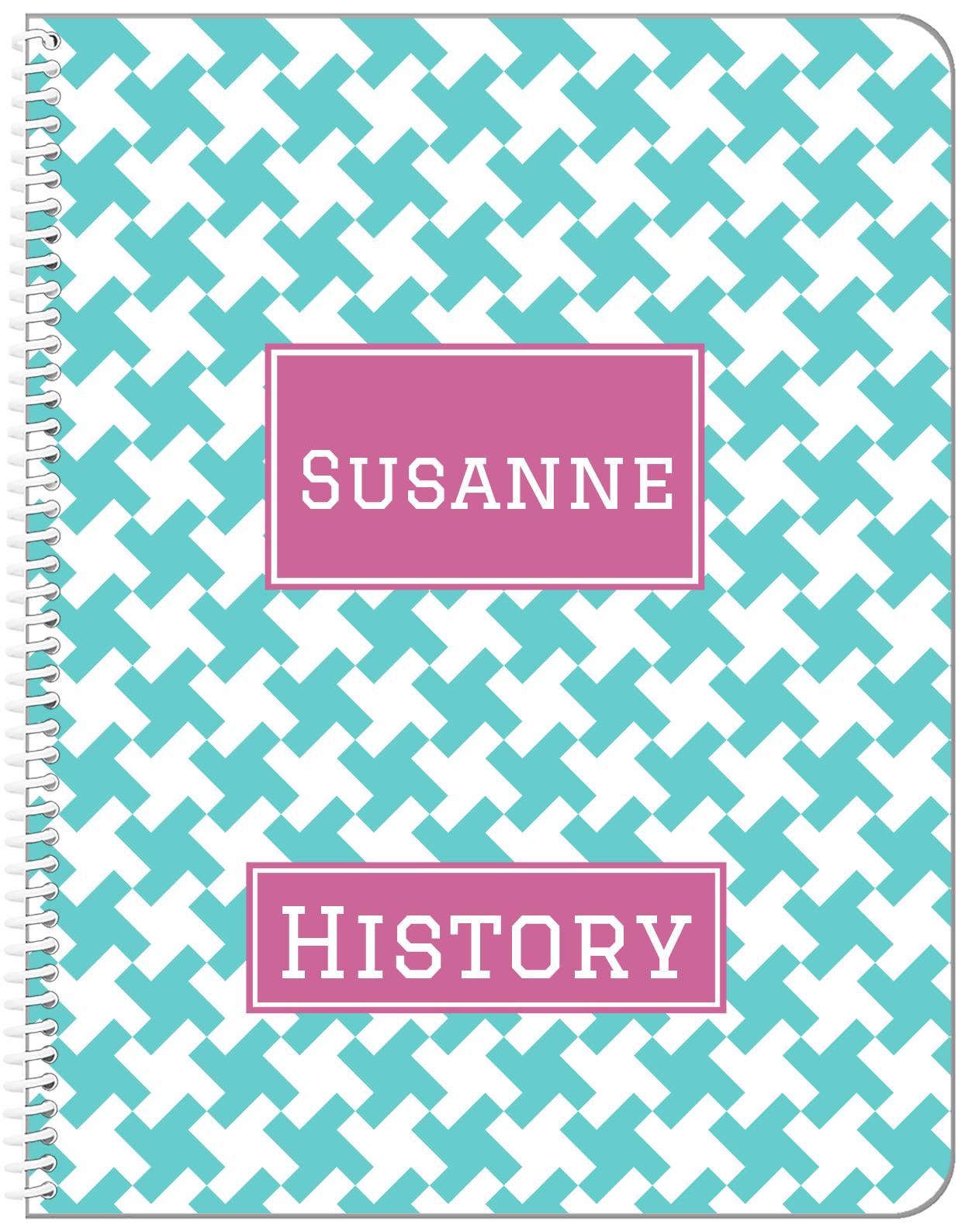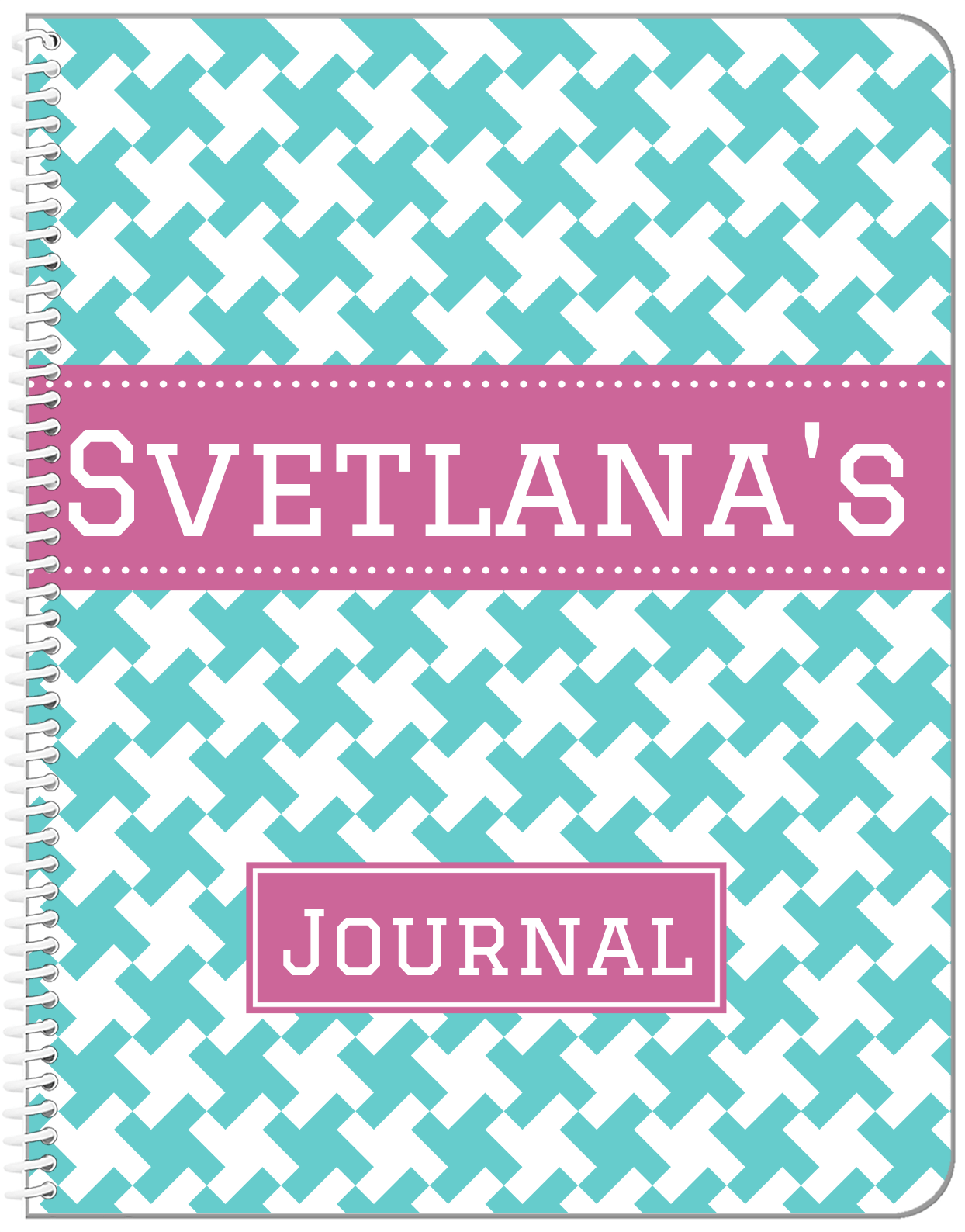 Personalized Houndstooth II Notebook - Teal and Orchid