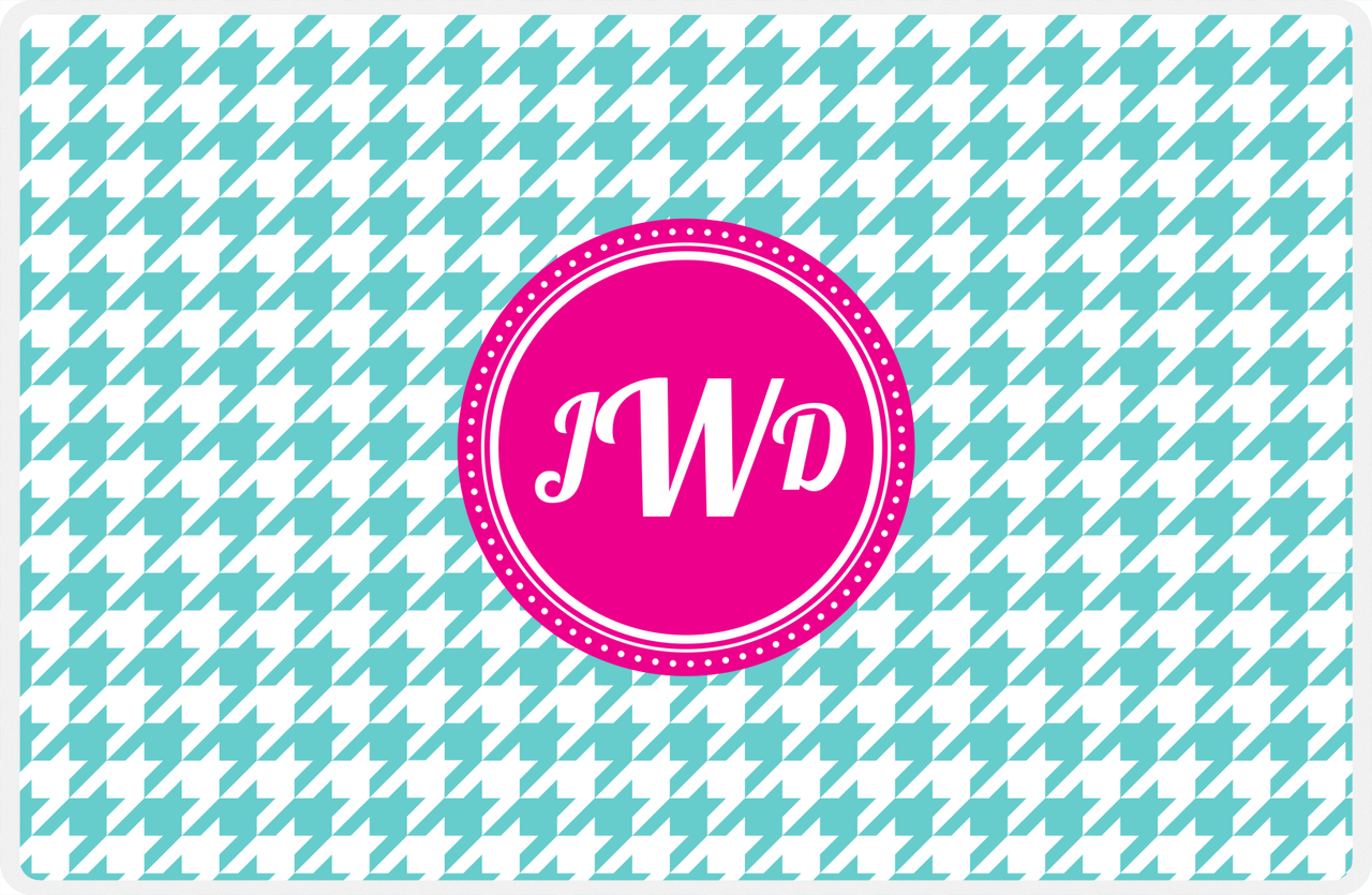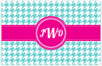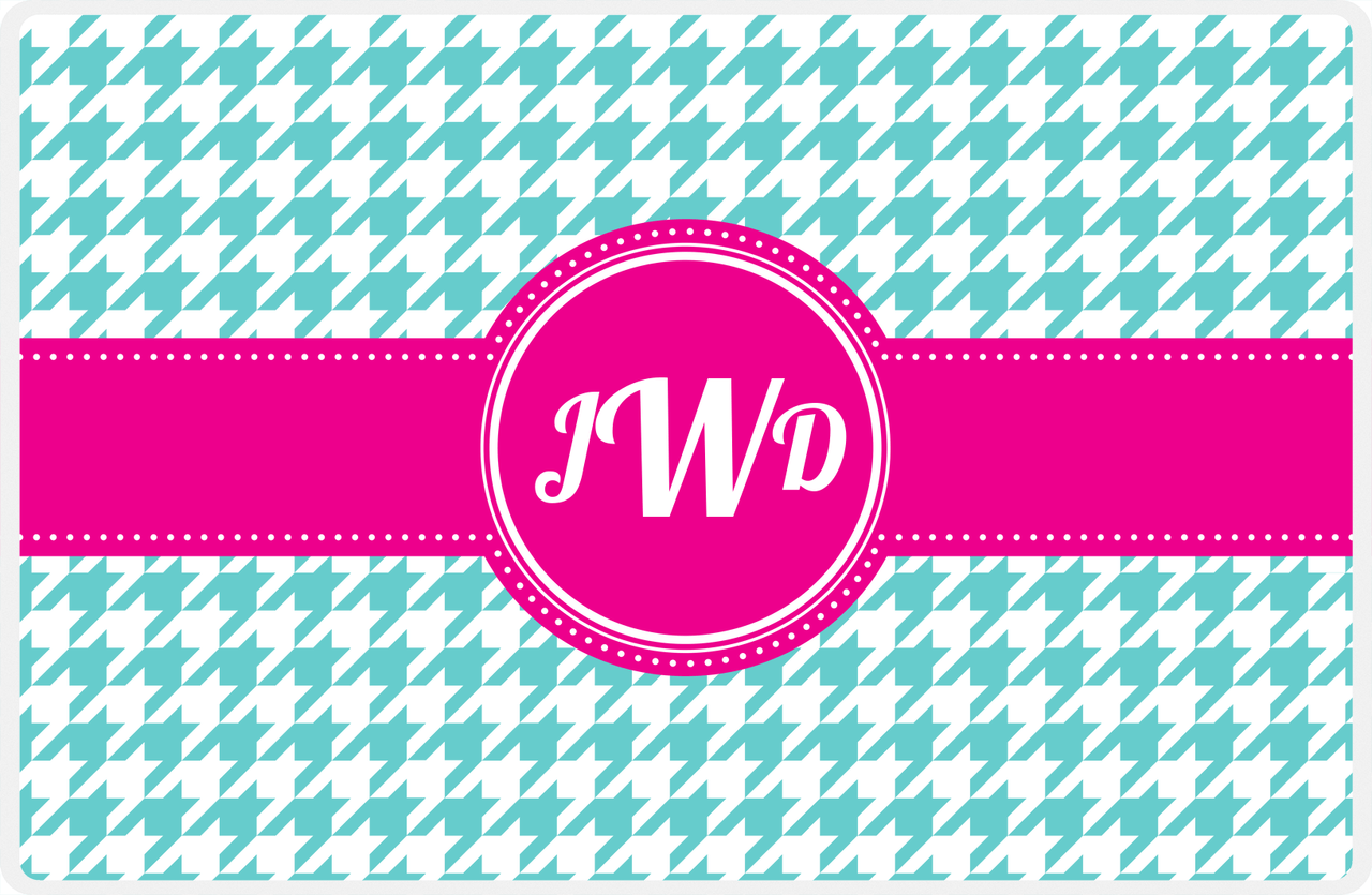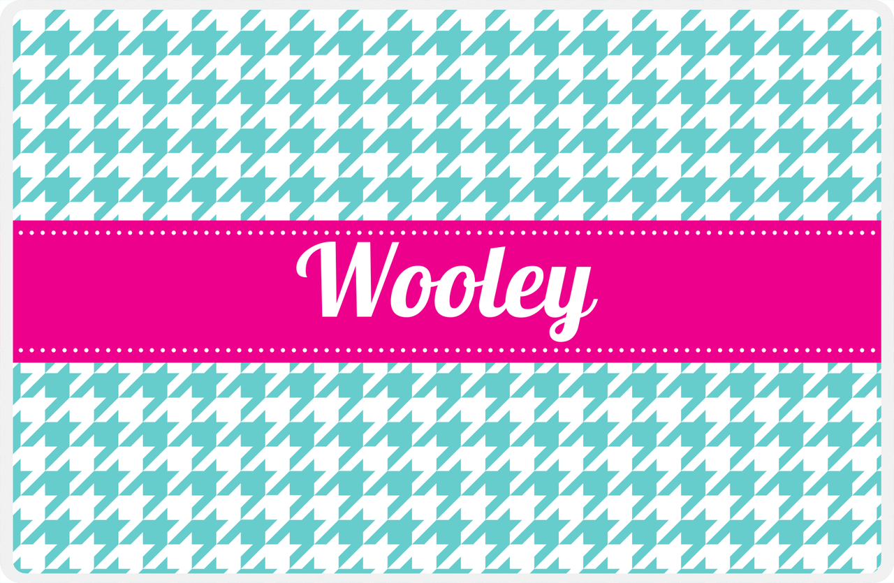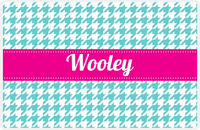Personalized Houndstooth Placemat - Viking Blue and White - Hot Pink