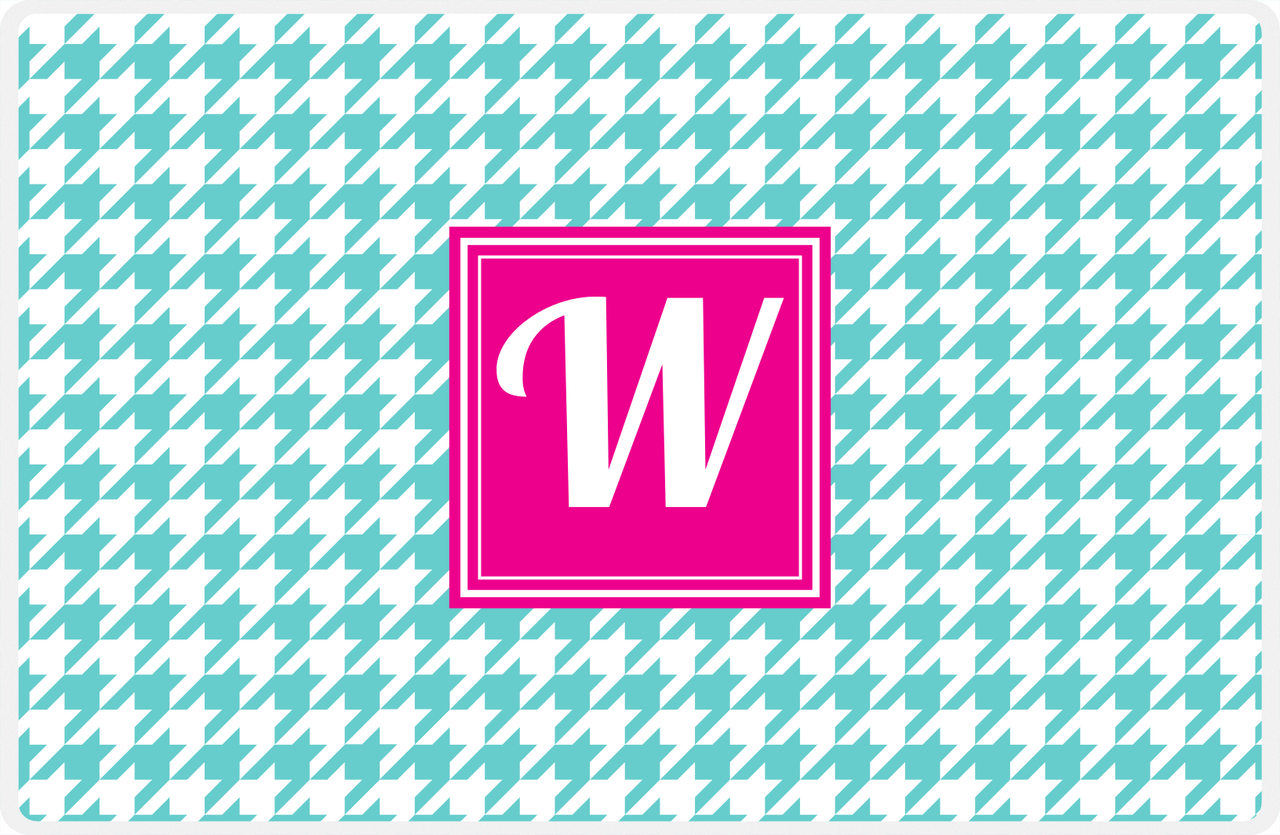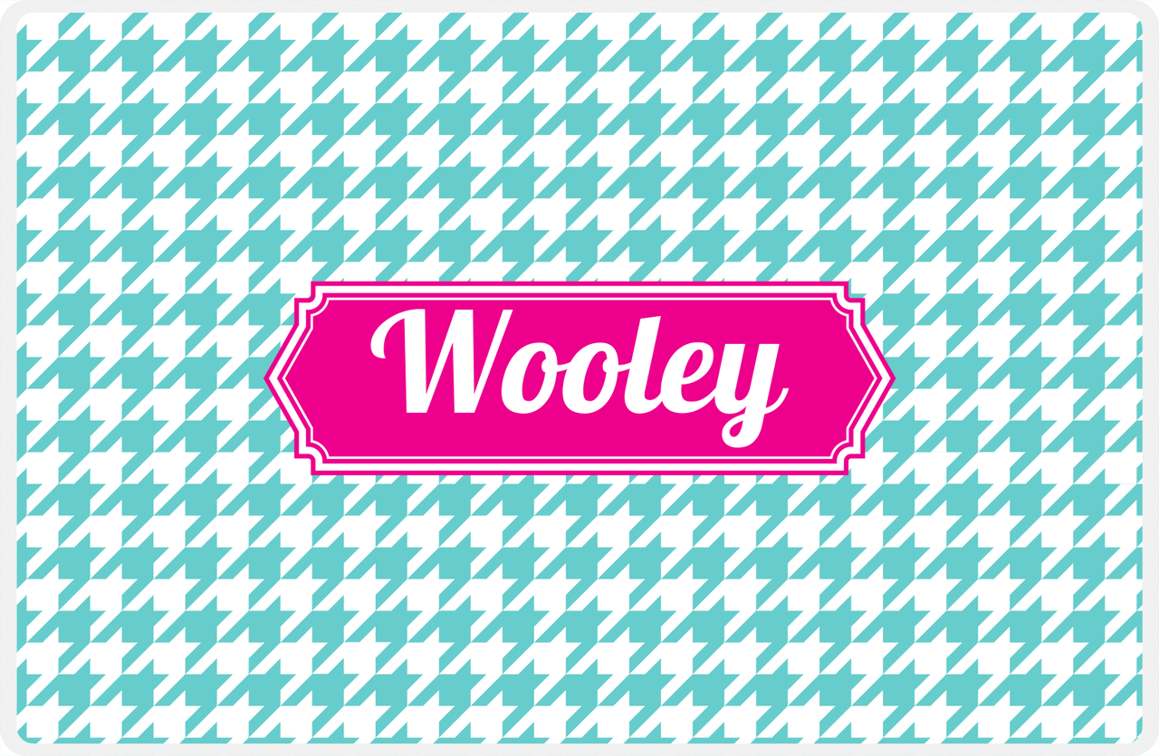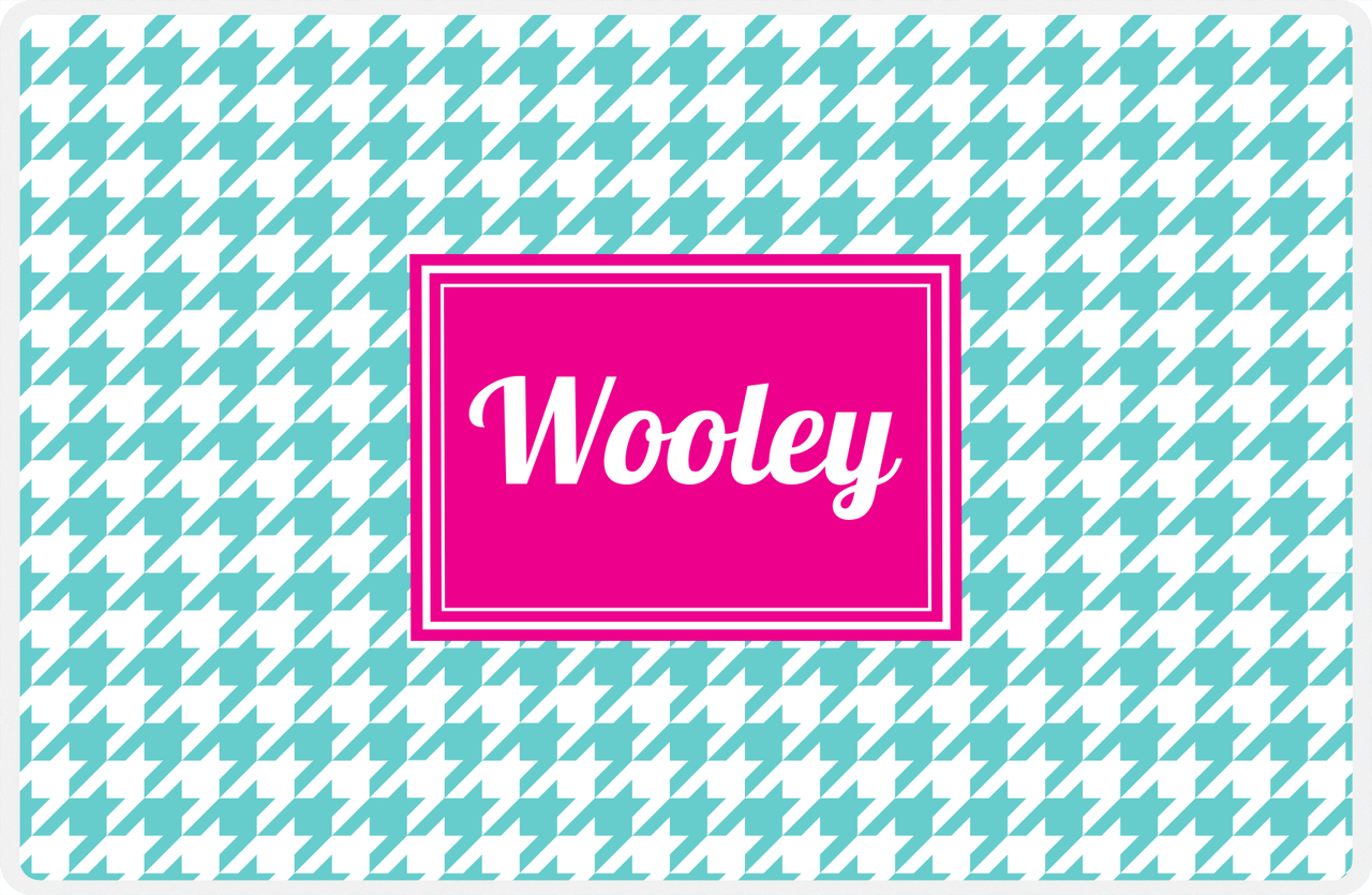 Personalized Houndstooth Placemat - Viking Blue and White - Hot Pink
