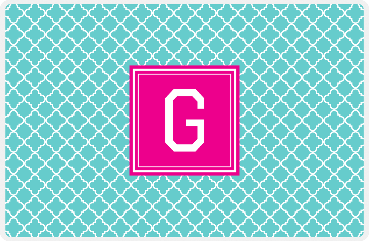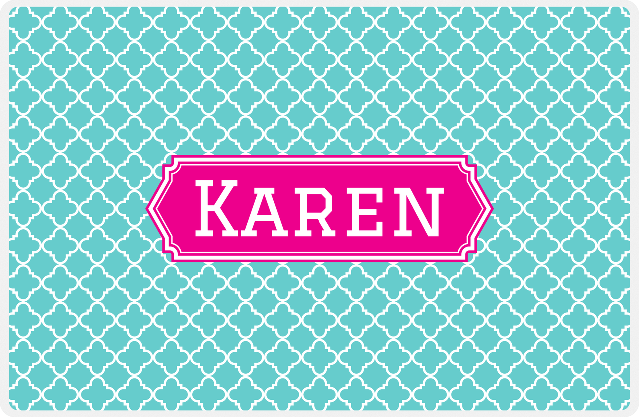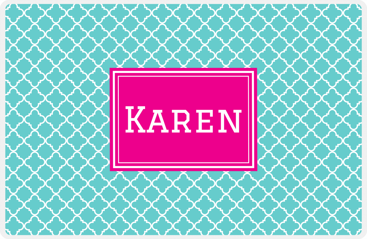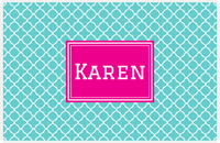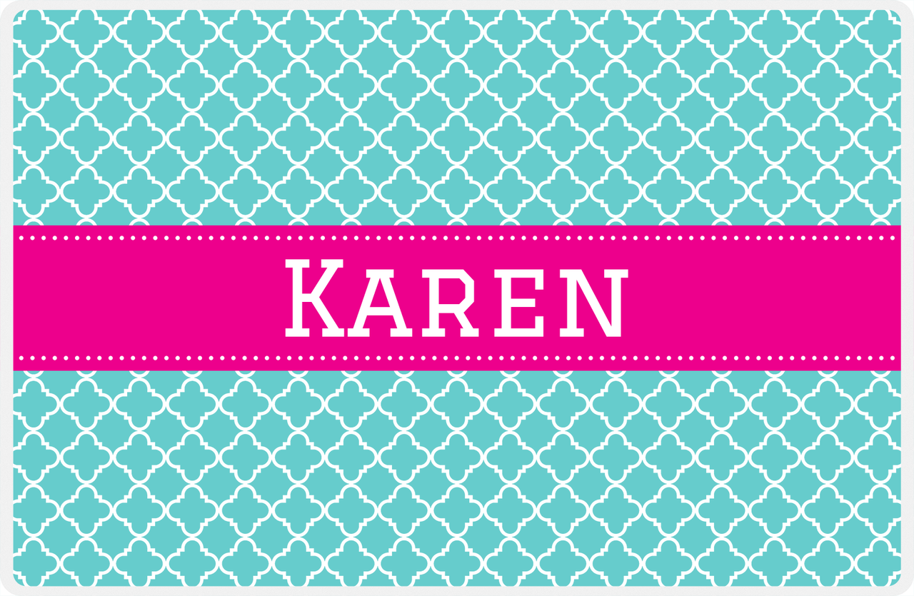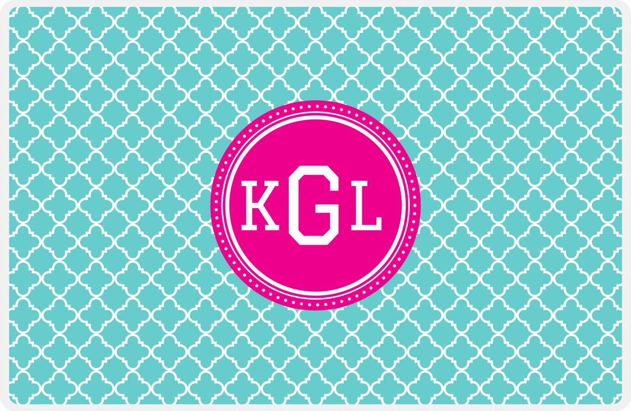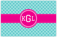 Personalized Quatrefoil Placemat - Viking Blue and White - Hot Pink