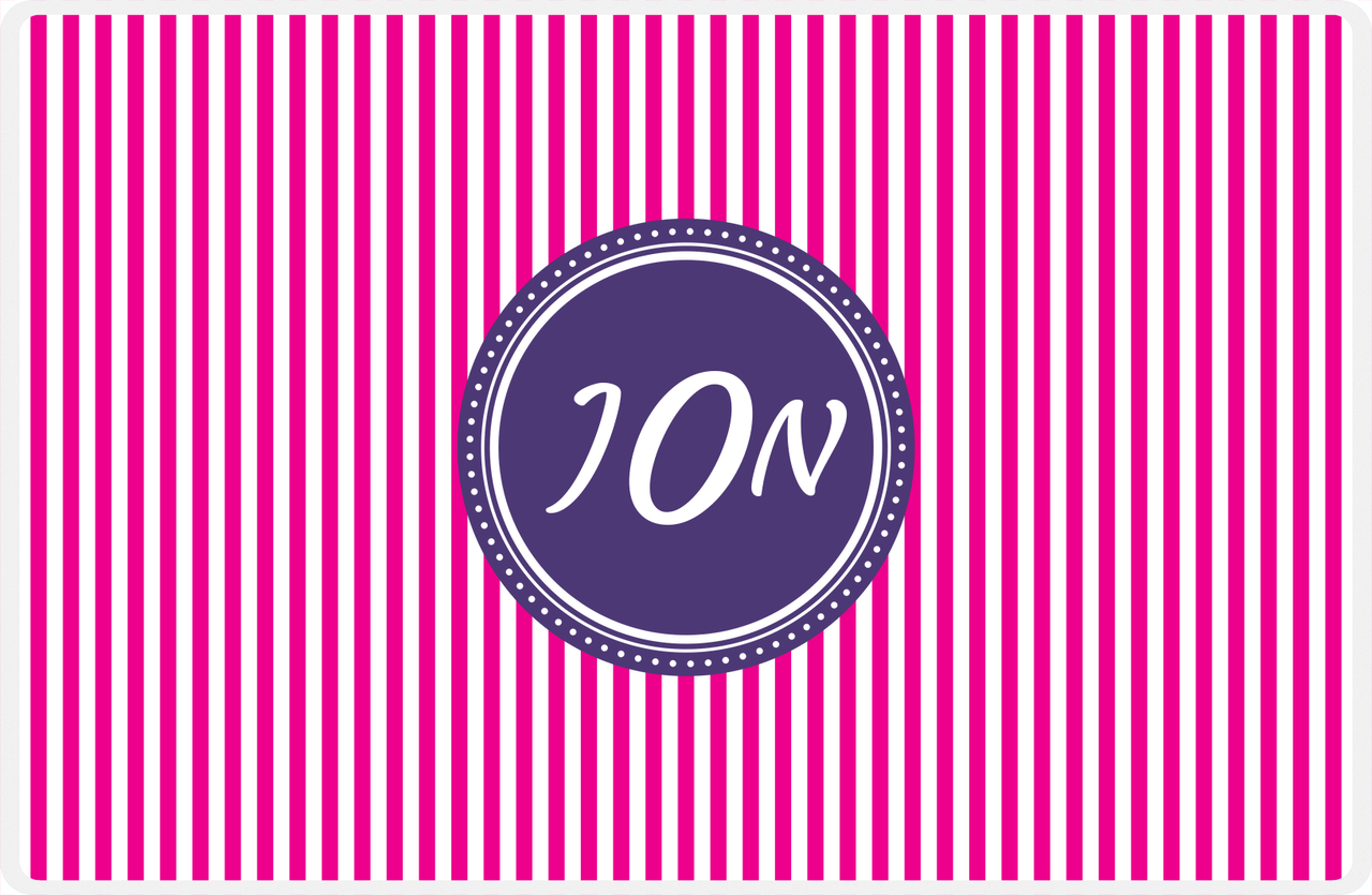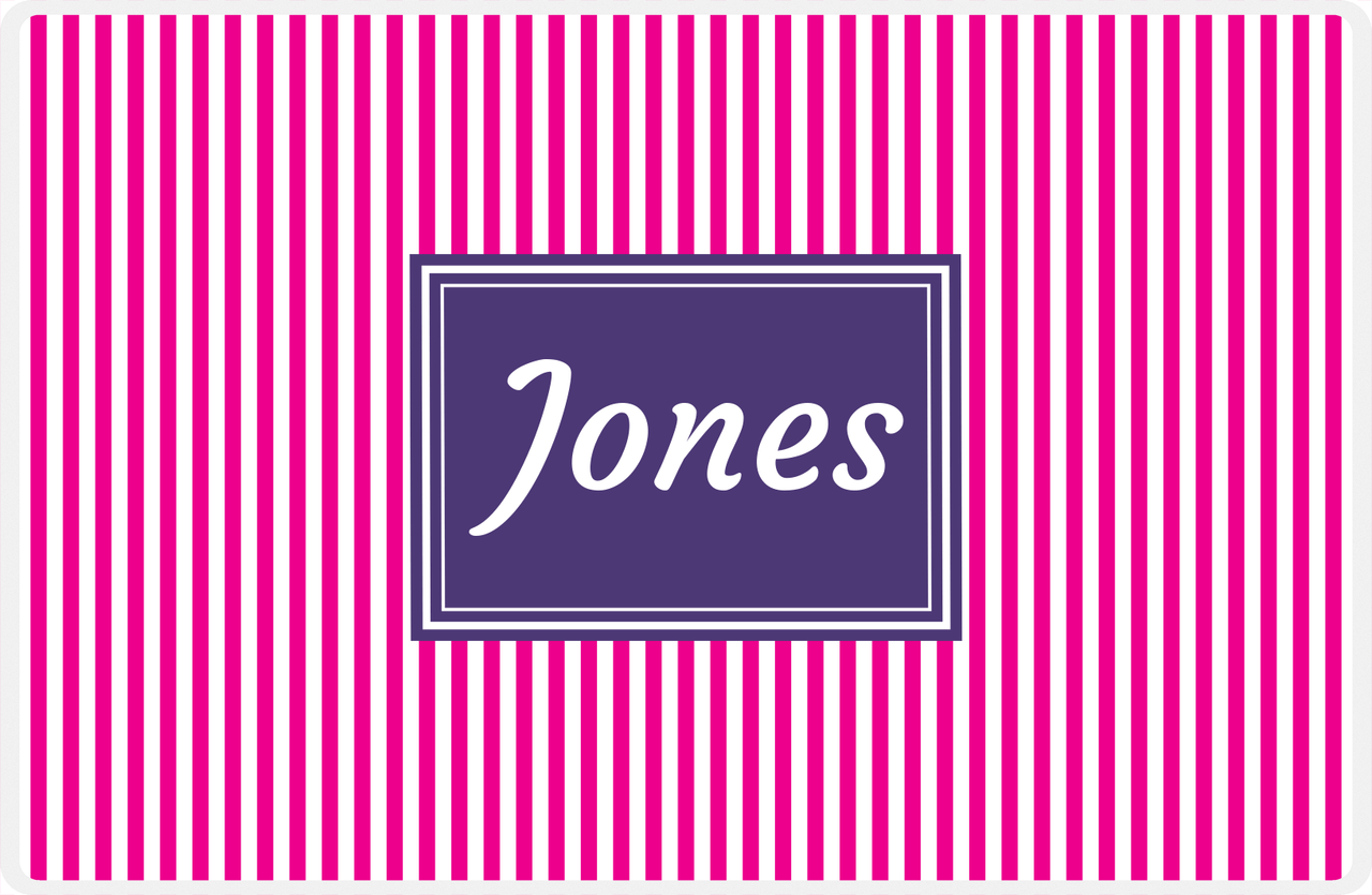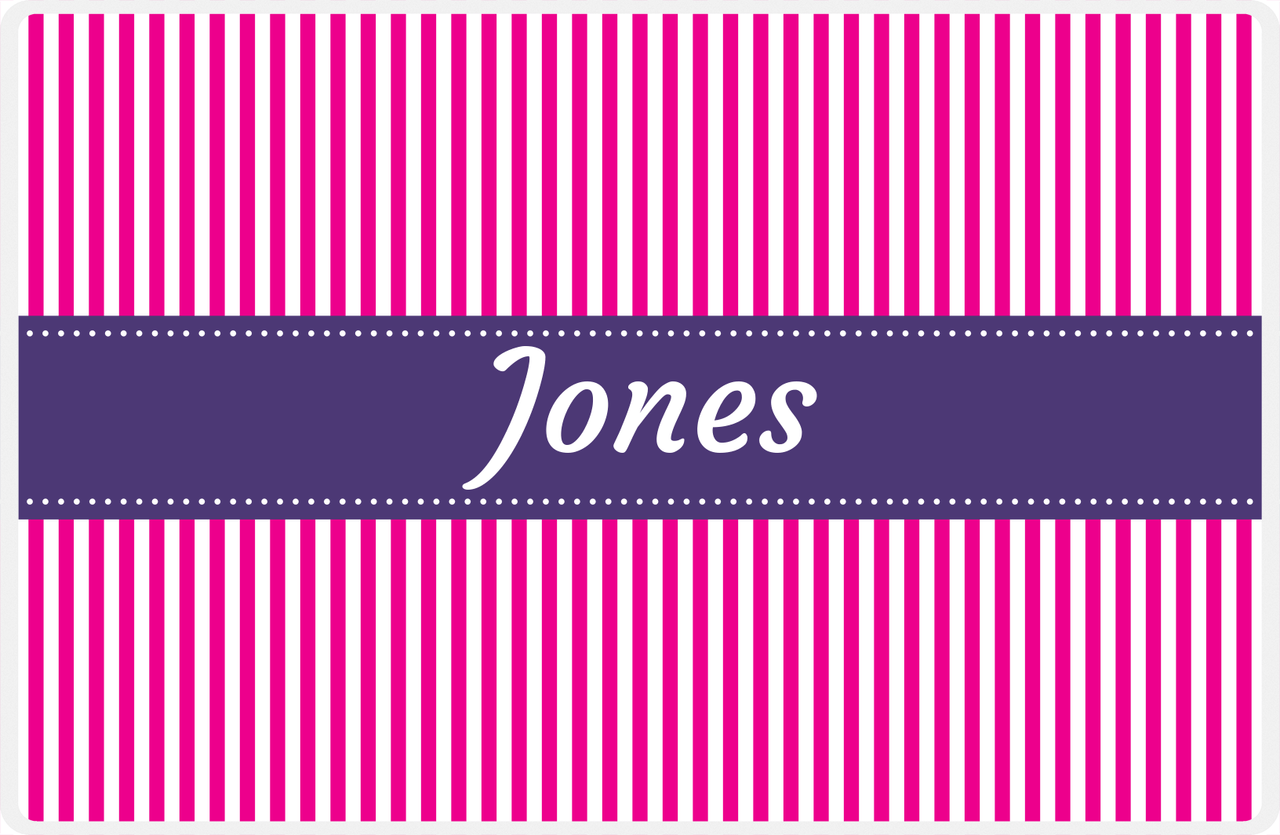 Personalized Vertical Stripes Placemat - Hot Pink and White - Indigo
