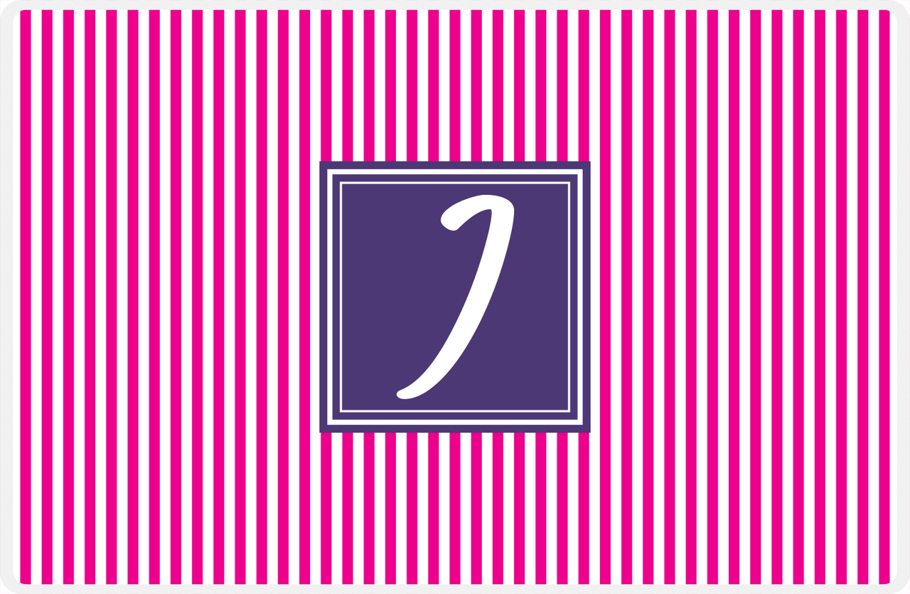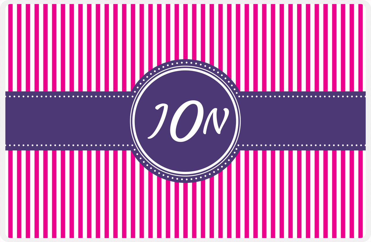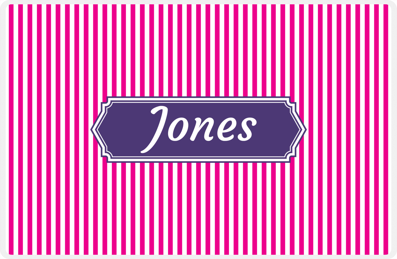 Personalized Vertical Stripes Placemat - Hot Pink and White - Indigo