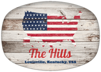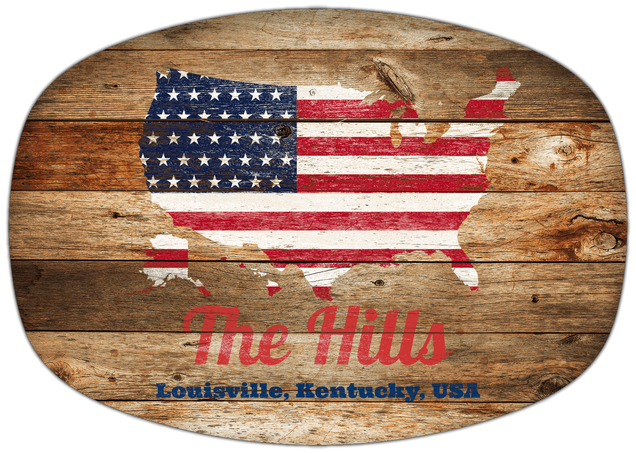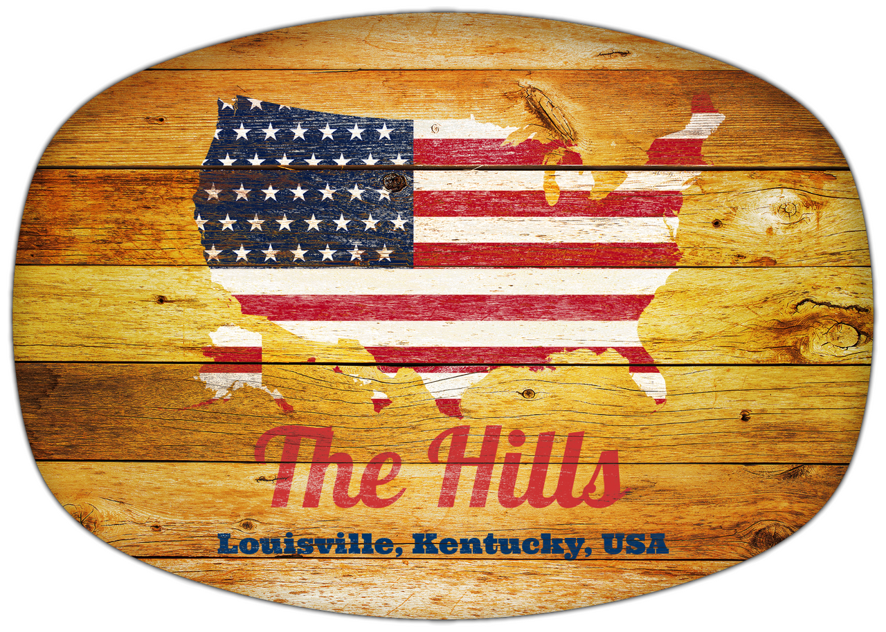 Personalized Faux Wood Grain Plastic Platter - USA Flag - Louisville, Kentucky