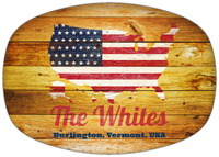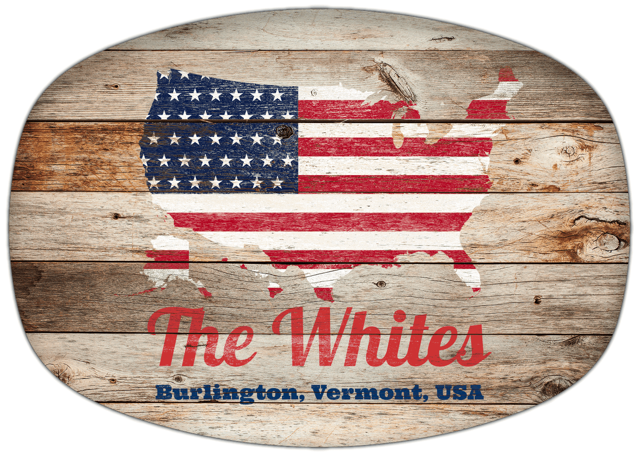 Personalized Faux Wood Grain Plastic Platter - USA Flag - Burlington, Vermont